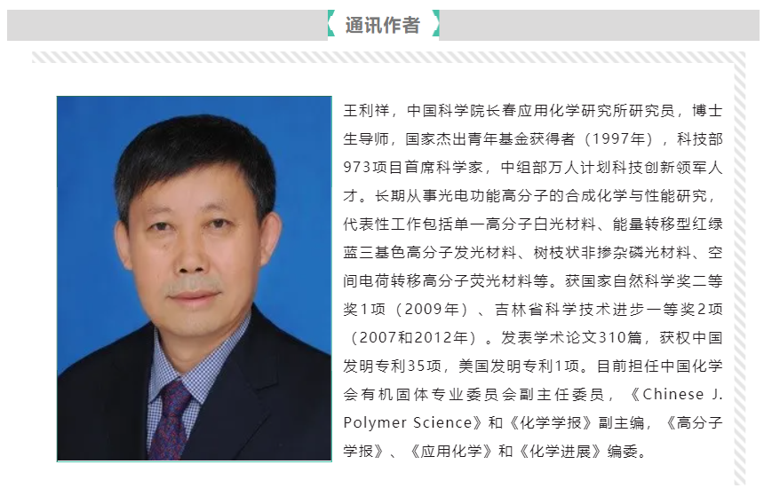 本文第一作者为中国科学院长春应用化学研究所邵世洋副研究员,通讯作者为王利祥研究员。